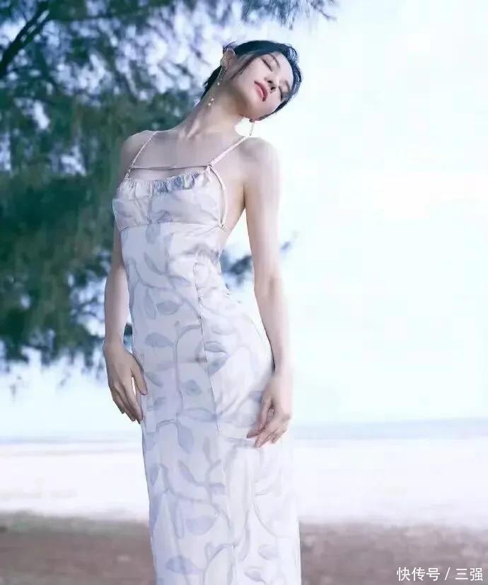 最绝的还是海边那组!露背吊带裙随着海风轻轻飘着,那背线流畅得跟艺术品似的,配上她那笑容,明媚又性感,我一个女生看了都忍不住心动!这身材管理也太卷了吧,到底是怎么把线条维持得这么绝的?