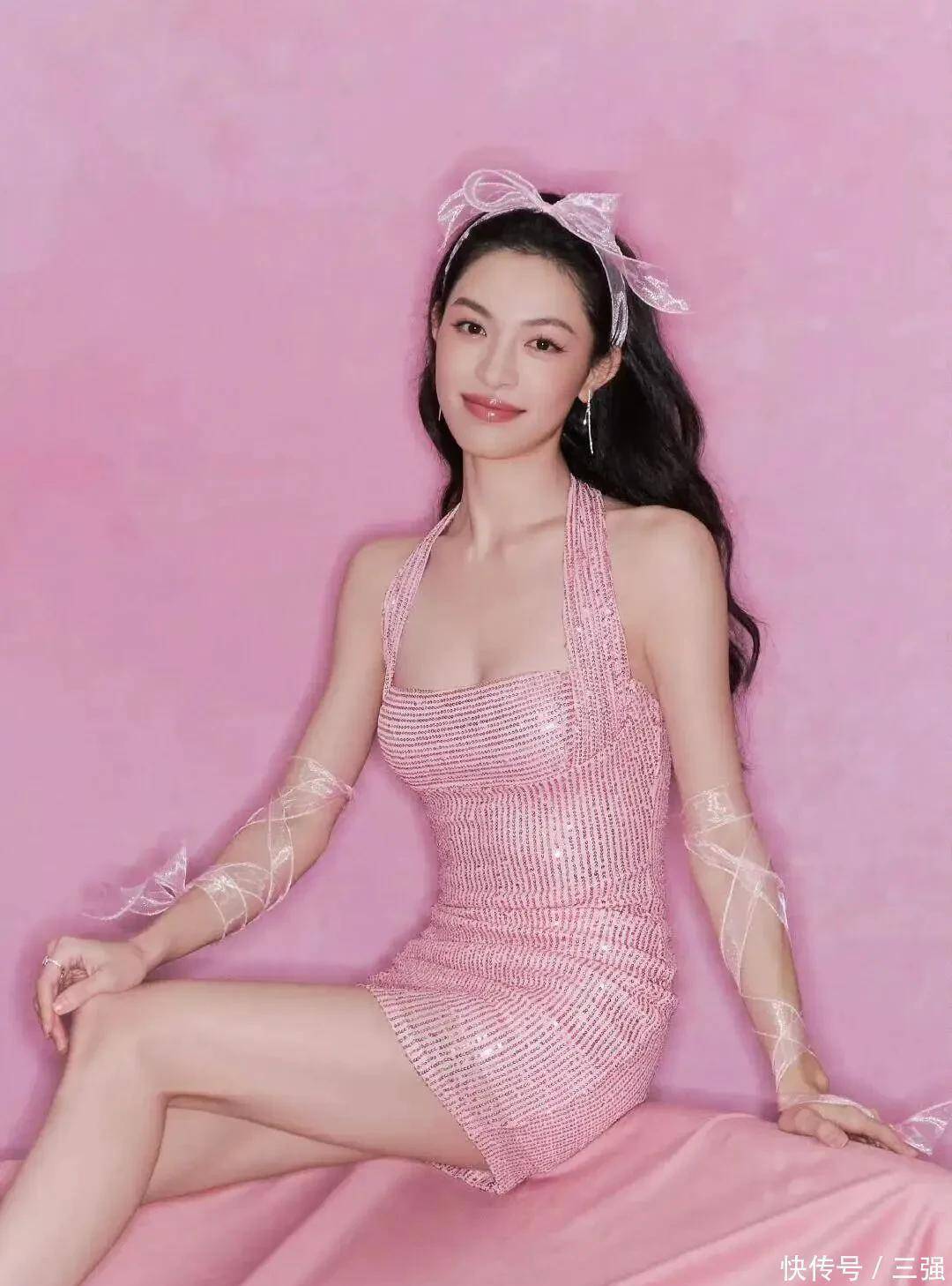 还有那套粉色小短裙,谁能想到亮片和少女感能融合得这么妙,一摆pose,整个就是发光的甜辣芭比,这造型走出去,不得把全场目光都吸过来?